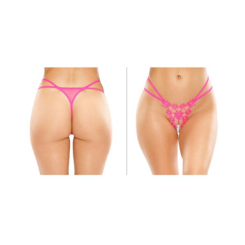 Aster Crotchless Strappy Flower Pearl Thong Pink L/xl