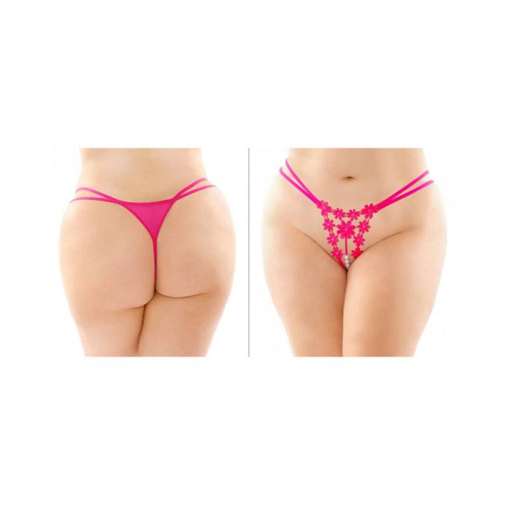 Aster Crotchless Strappy Flower Pearl Thong Pink Queen