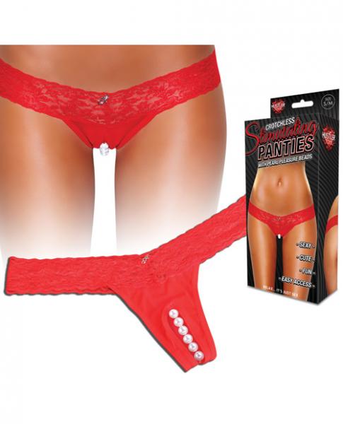 Crotchless Panties Thong Pearl Beads Red M/L