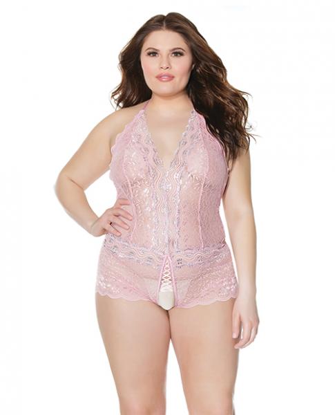 Crystal Pink Halter Crotchless Teddy Pink/silver Os/xl