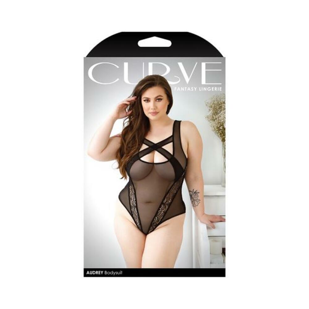 Home Women's Lingerie Bodysuits Curve Audrey Criss-cross Mesh Bodysuit With Lace Panel Detail And Snap Closure 1x/2x Black