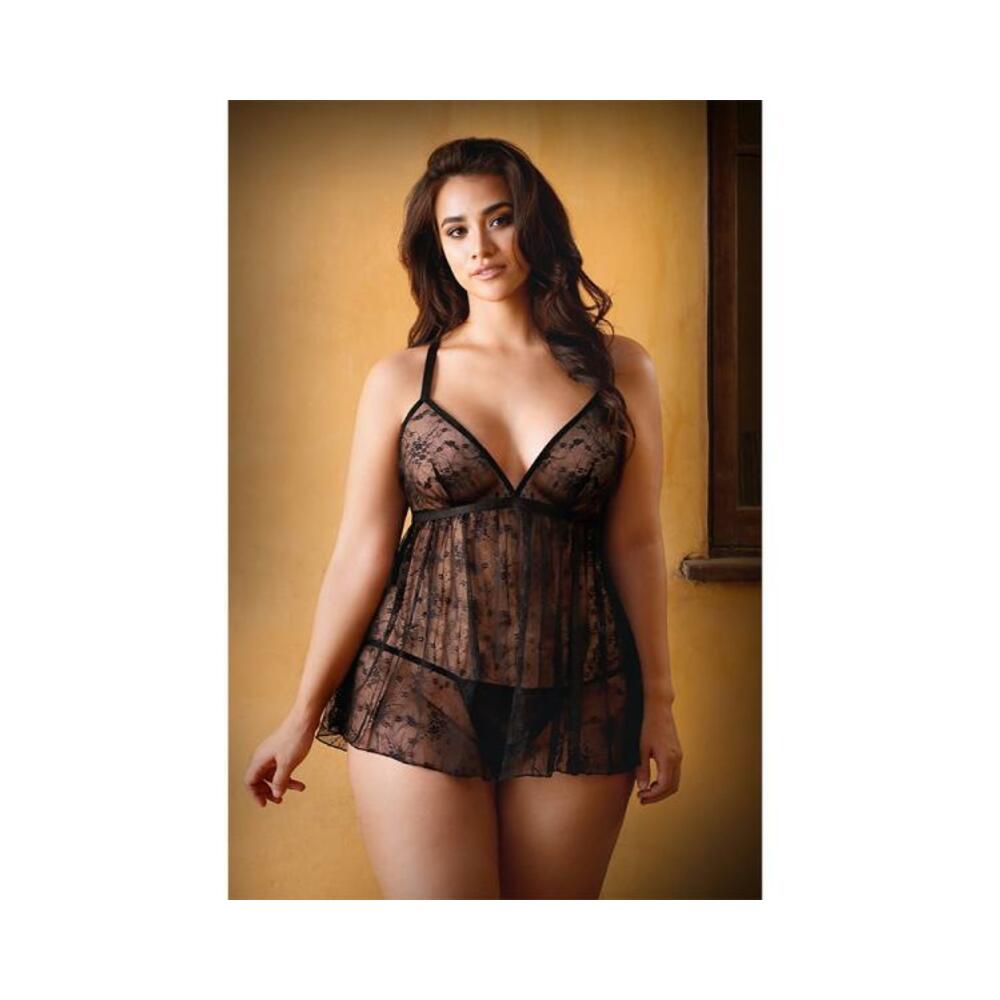 Curve Elena Lace Babydoll With Criss Cross Back Detail And Matching Panty 3x/4x Black