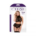 Curve Katia Two Piece Halter Bra Top With Matching Gartered Panty Black 3x/4x