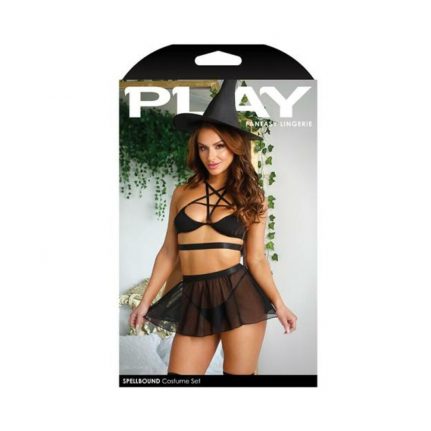 Curve Rebel Chain Back Wetlook Bra Top & Matching Thong Panty 3x/4x Black
