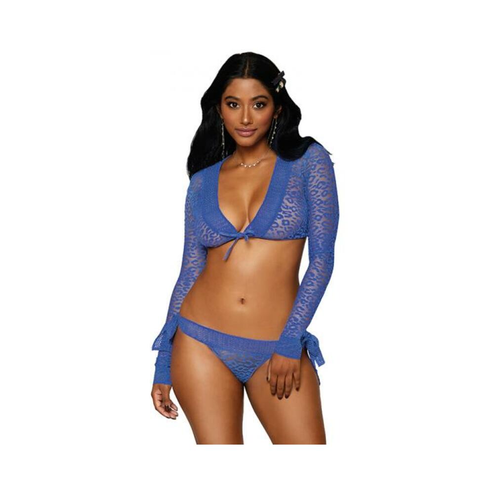Dreamgirl 2-piece Mesh Knit Animal Print Shrug & Cheeky Panty Periwinkle O/s