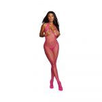 Dreamgirl Diamond-net Halter Bodystocking With Open Crotch Neon Pink Os
