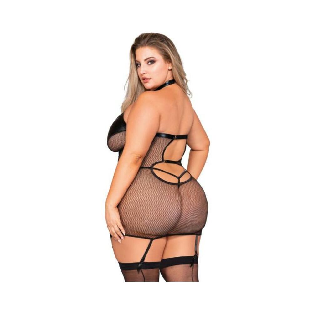 Dreamgirl Stretch Faux-leather And Fishnet Garter Slip Queen