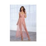 Dreamgirl Stretch Lace Teddy & Sheer Mesh Maxi Skirt With Adjustable Straps & G-string Rose Small Ha
