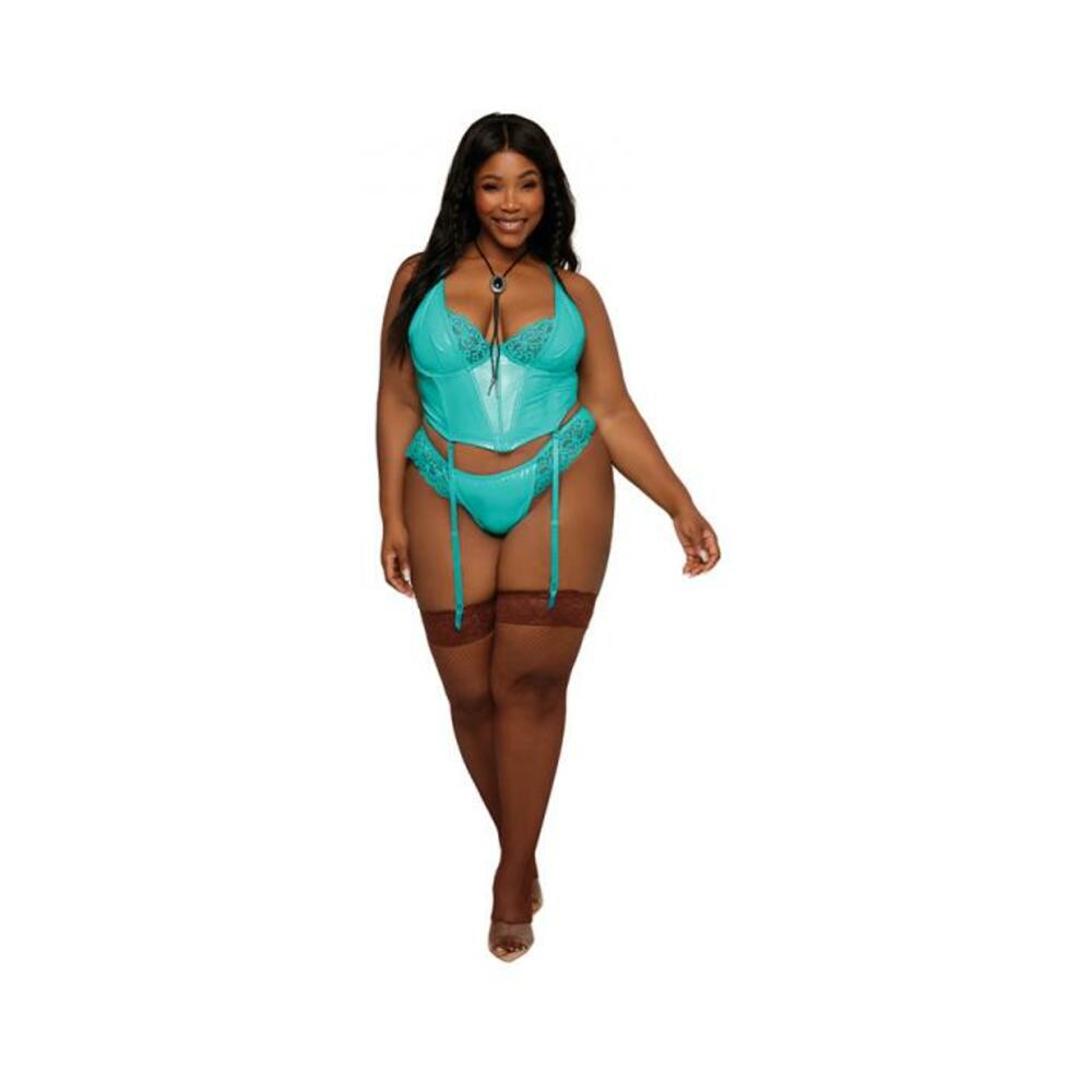 Dreamgirl Stretch Vinyl And Lace Bustier And G-string Set Ocean 3xl