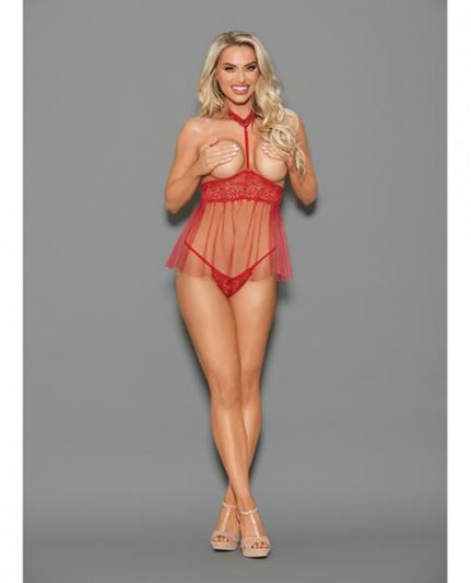 Euphoria Open Top Choker Attached Babydoll W/open Crotch Panty Red O/s $28.41