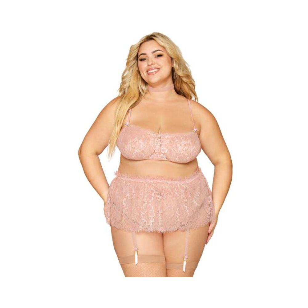 Eyelash Lace Bralette Garter Skirt Set Rose Quartz Q/s