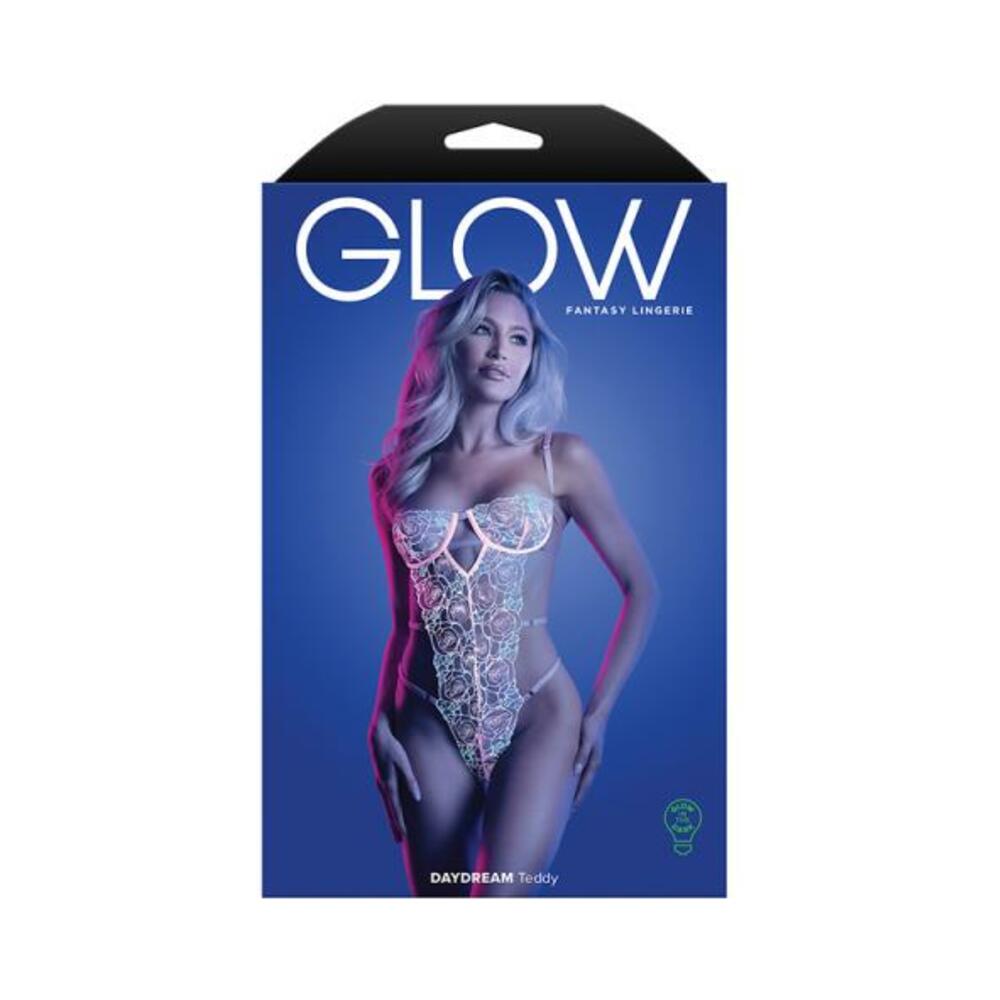 Fantasy Lingerie Glow Daydream Strappy Glow-in-the-dark Embroidered Mesh Teddy S/m