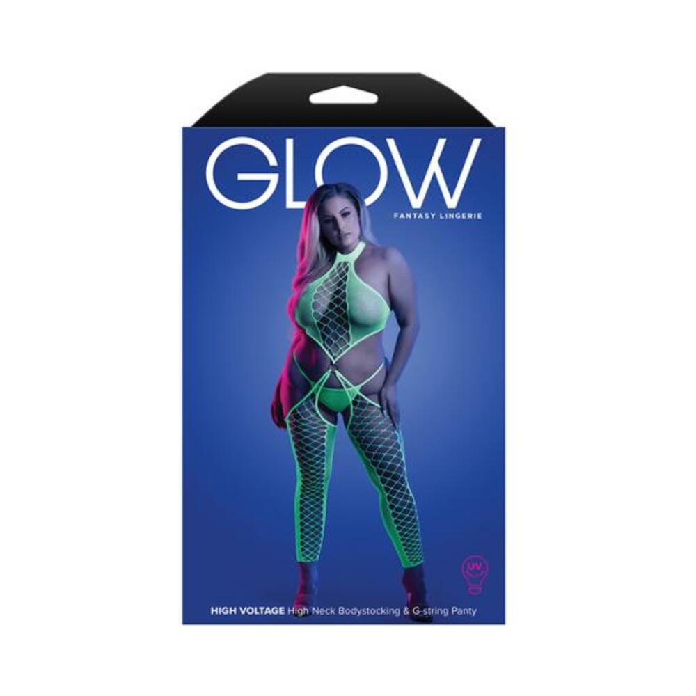 Home Women's Lingerie Bodystockings Fantasy Lingerie Glow High Voltage Uv Reactive High Neck Bodystocking & G-string Panty Queen Size
