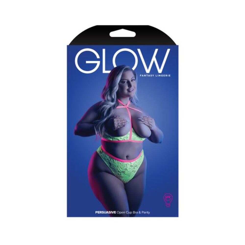 Fantasy Lingerie Glow Persuasive Contrast Elastic Open Cup Lace Cage Bra & Panty Neon Green Queen Si