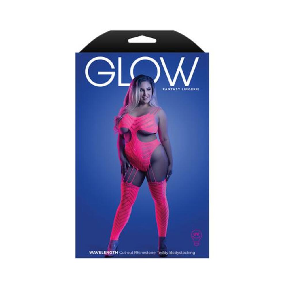 Fantasy Lingerie Glow Wavelength Uv Reactive Rhinestone Fishnet Cut-out Teddy Bodystocking Queen Siz