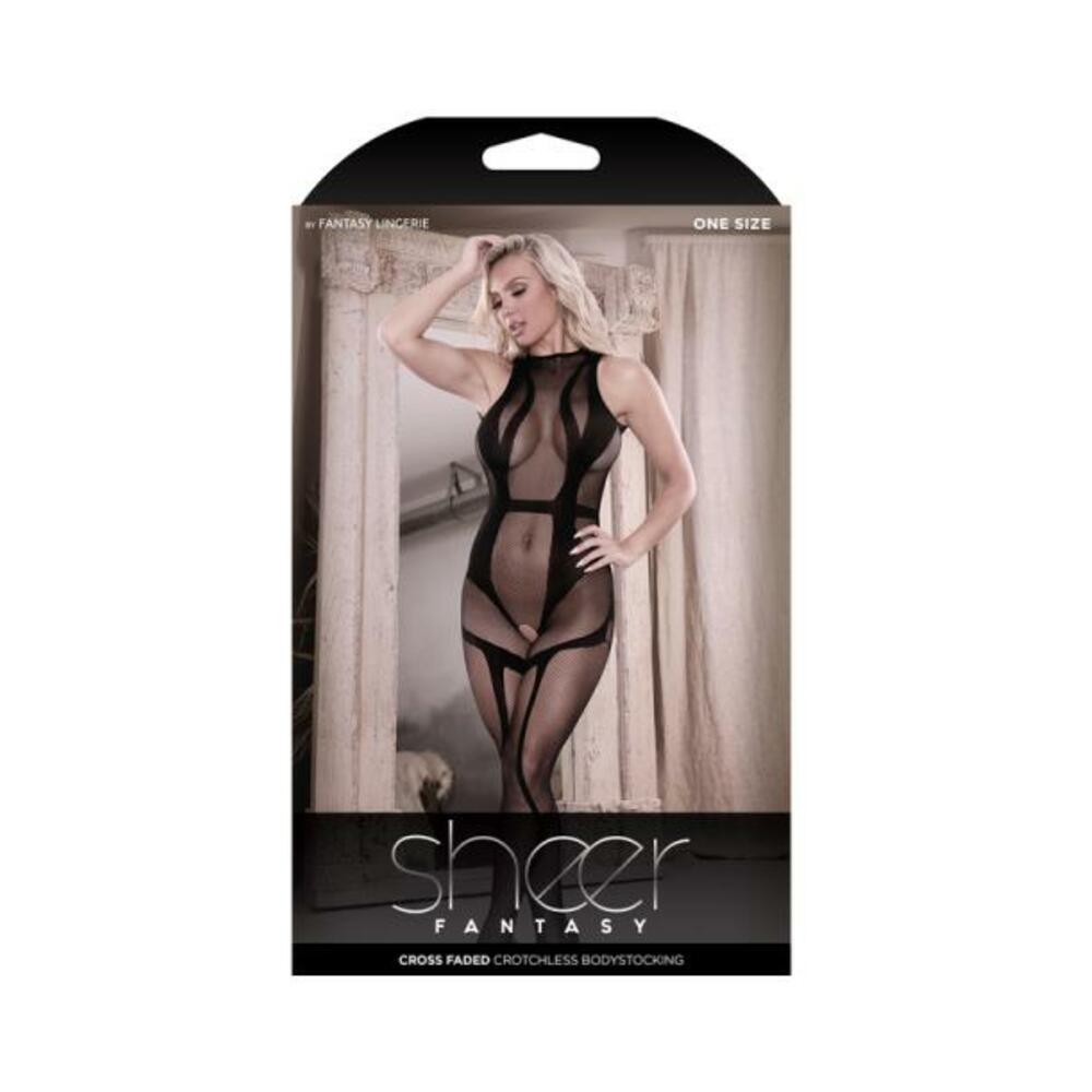 Fantasy Lingerie Sheer Cross Faded High Neck Crotchless Bodystocking Black O/s