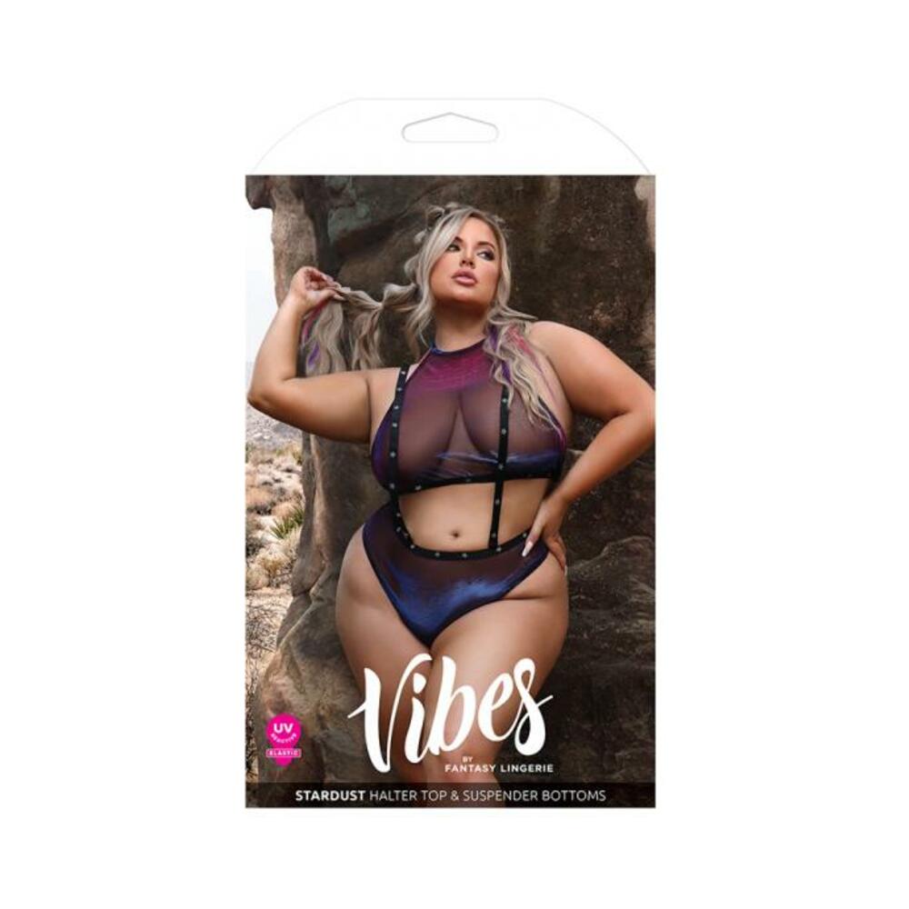 Fantasy Lingerie Vibes Stardust Iridescent Halter Top & Suspender Bottoms With Uv Reactive Star Prin