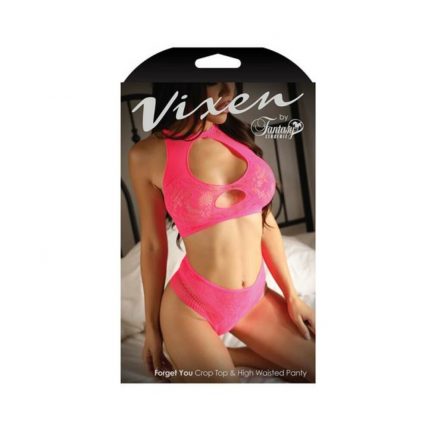 Fantasy Lingerie Vixen Forget You Seamless Lace Crop Top & High Waisted Panty Pink Queen Size