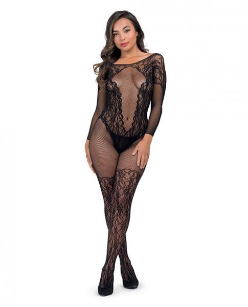 Stretch Lace Mesh Teddy Diamond Black O/S Queen