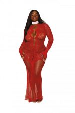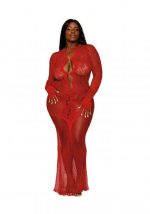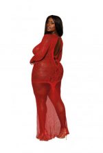 Floral Lace Bodystocking Gown Ruby Red Q/S from Dreamgirl Lingerie. Long sleeve with finger holes. Open accents down the front down to almost the belly button of the Gown. One size queen fits ladies 165 pounds to 275 pounds. Care hand wash in cold water. No bleach. Line dry. Please note one image has a white collar, not included. Categories: Lingerie, Clothing, Naughty Role Play, Babydolls, Slips, Plus Size. Restricted, Amazon Restricted. 2023.