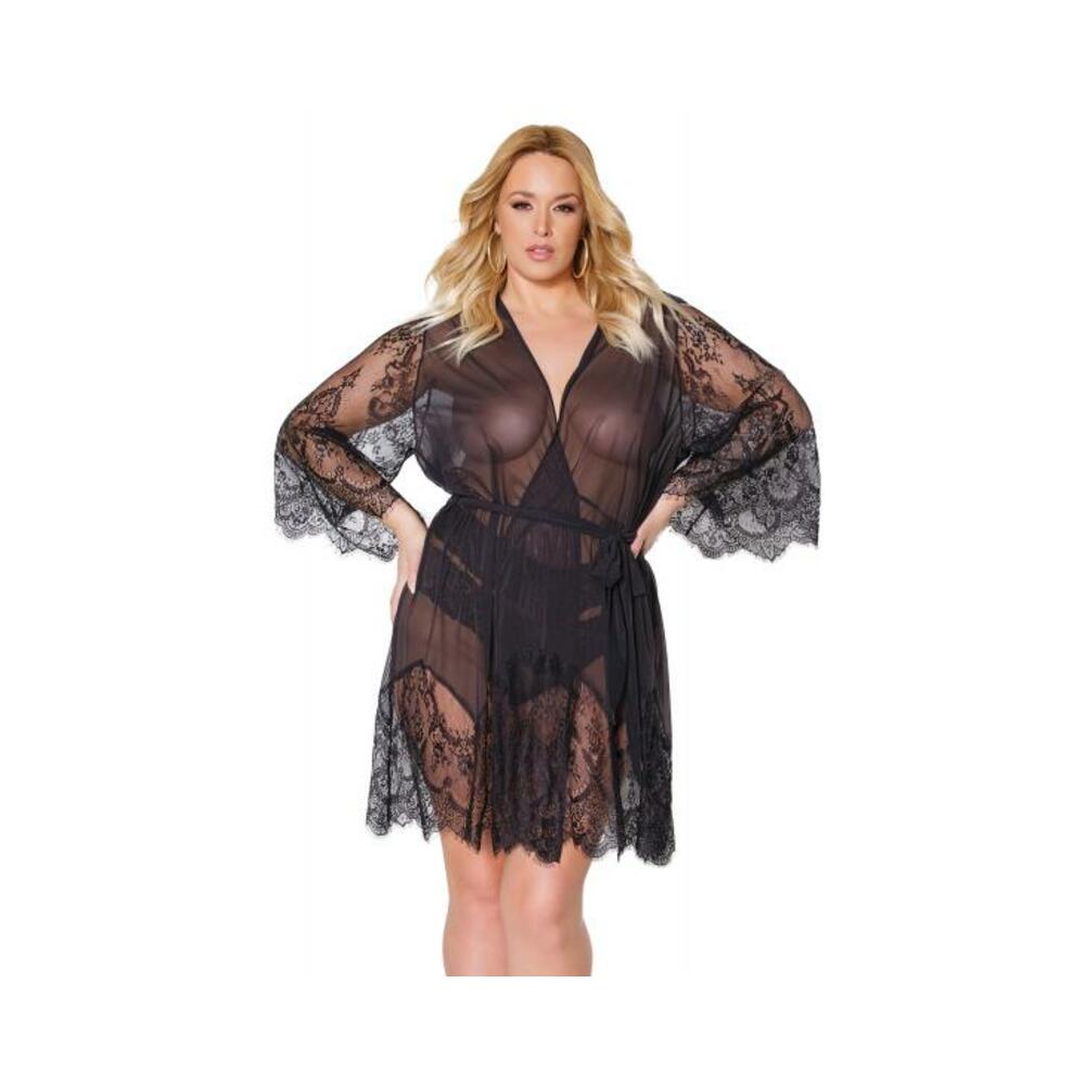 Holiday Eyelash Lace Robe W/bell Sleeves Black Os/xl