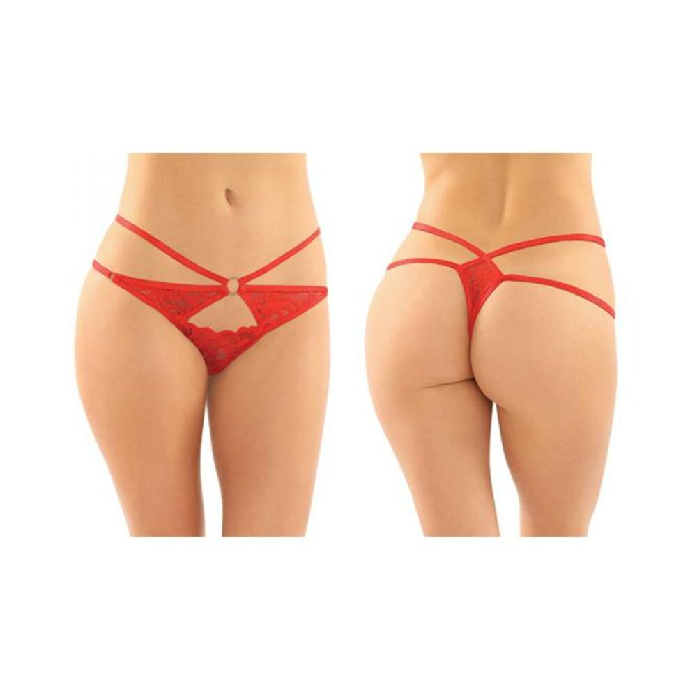 Jasmine Strappy Lace Thong With Front Keyhole Cutout 6-pack S/m Red