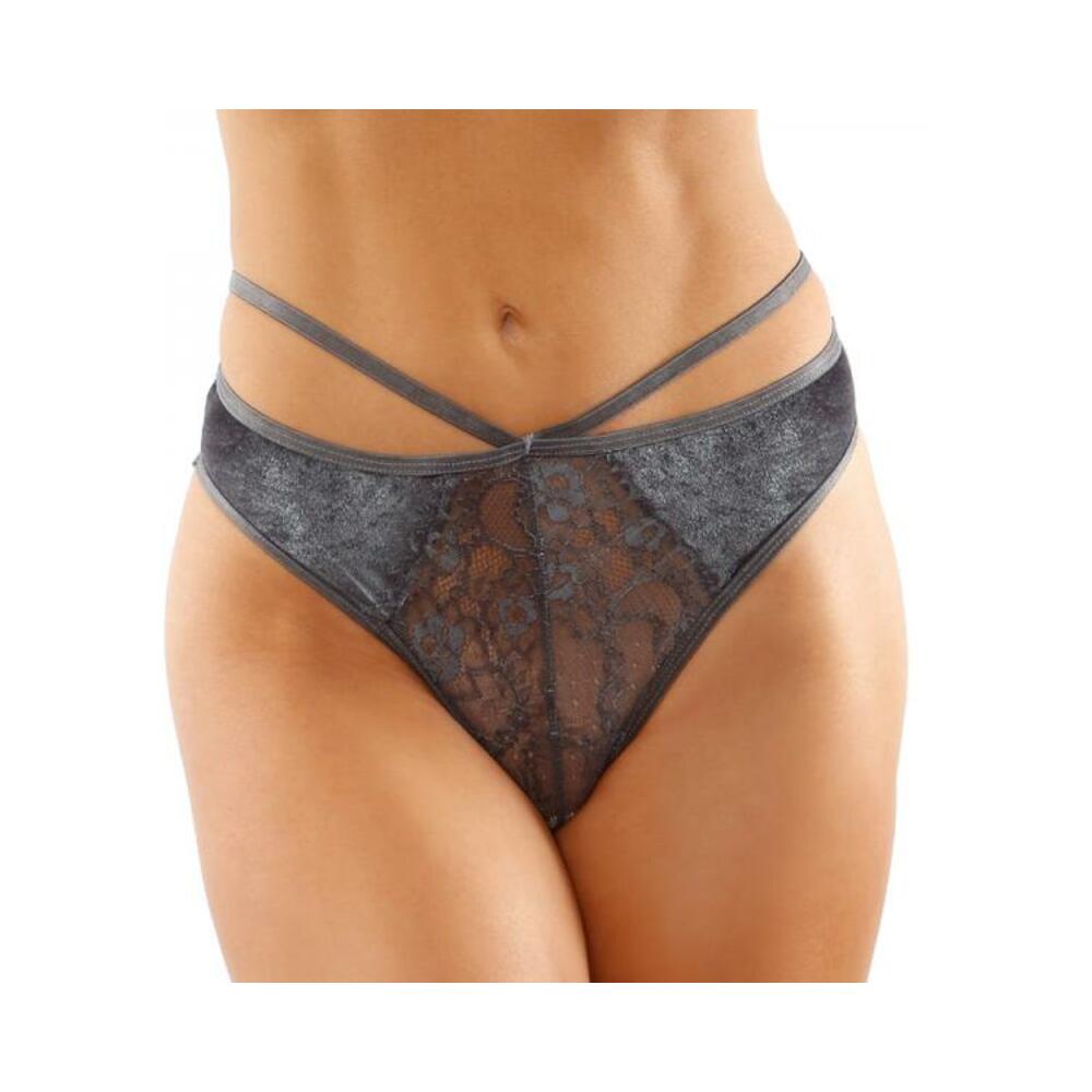 Home Women's Lingerie Thongs Kalina Velvet Strappy Cut-out Thong With Keyhole Back Gray L/xl