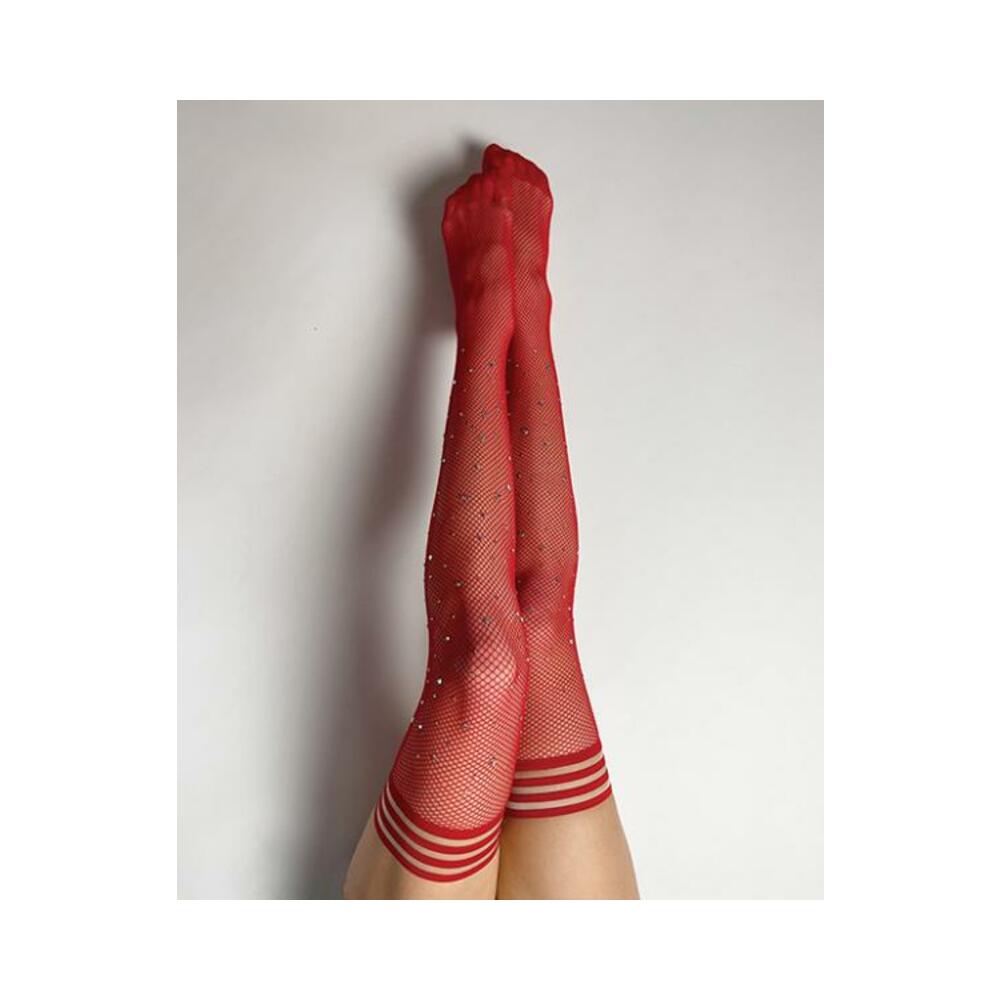 Kixies Red Fishnet Rhinestone Thigh High Size B
