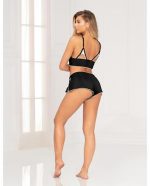 Knit Jersey Bralette Contrast Lace & Shorts Black Md