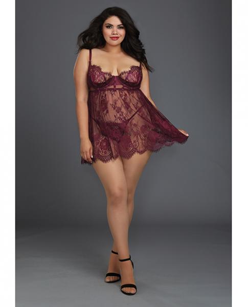 Lace Babydoll Underwire Cups & Thong Purple 2X