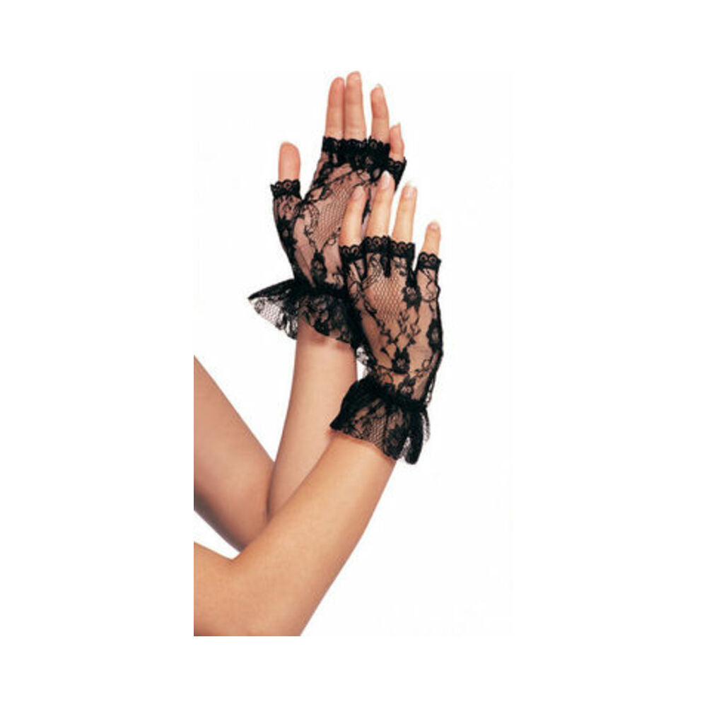 Lace Fingerless Ruffle Gloves Os Bk 12pk