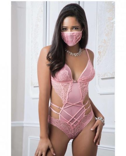 Lace Mask and Teddy. From G World. One Size, Bust: 30in.-36in. A-C cup. Weight: 110lb-165lb. Waist 24in.-29in. Hip: 34in.-39in. Size: 0-10.