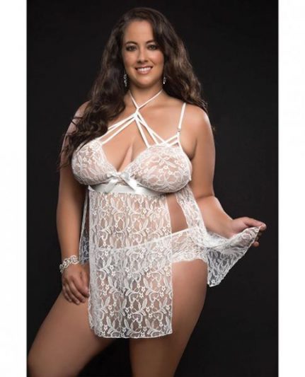 Lace Halter Babydoll W/lace Panty White Qn $28.41