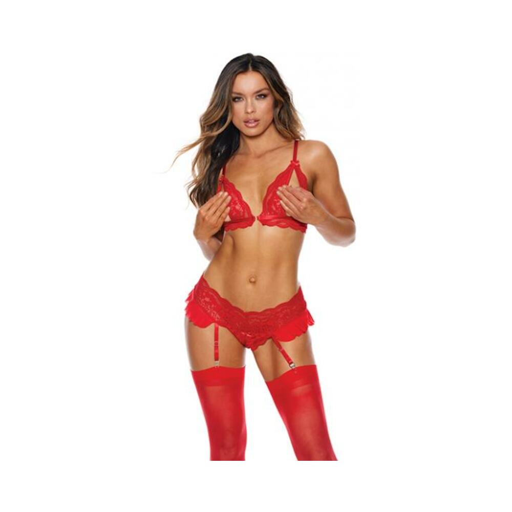Lace Peek A Boo Bra W/garter Red Xl