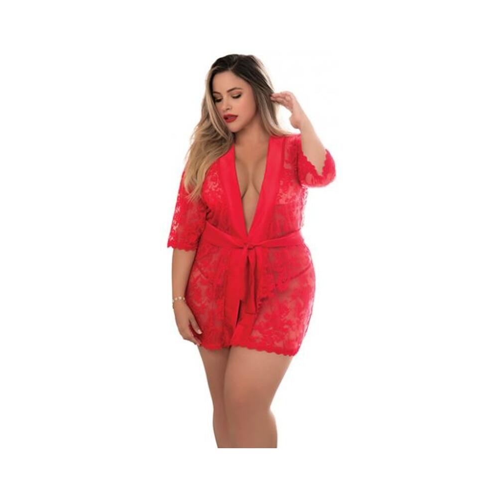 Lace Robe W/matching G-string Red 1x/2x
