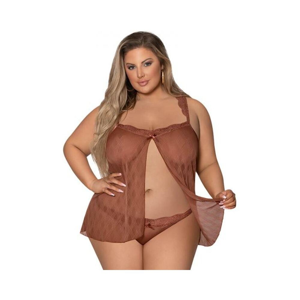 Home Women's Lingerie Babydolls Magic Silk Caramel Kiss Baby Doll & Thong Carmel Queen Size