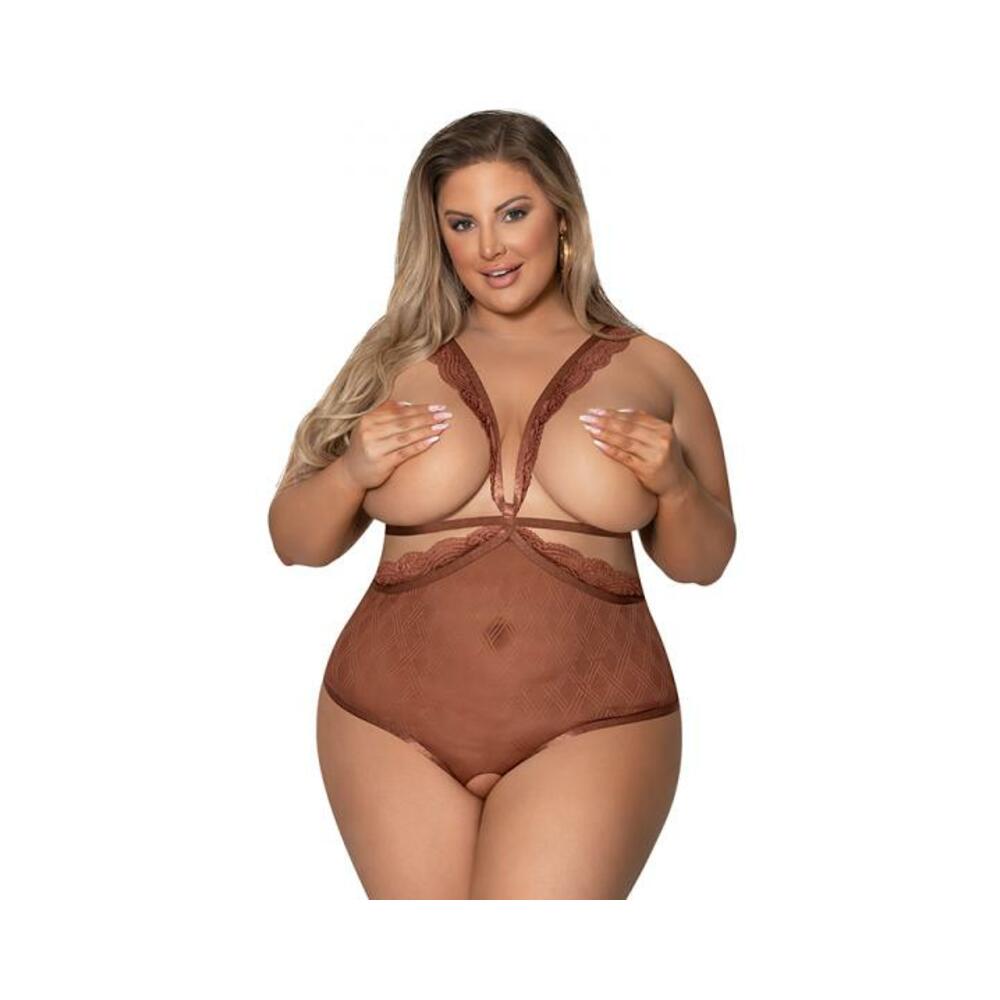 Home Women's Lingerie Teddys Magic Silk Caramel Kiss Teddy W Open Back Carmel Queen Size