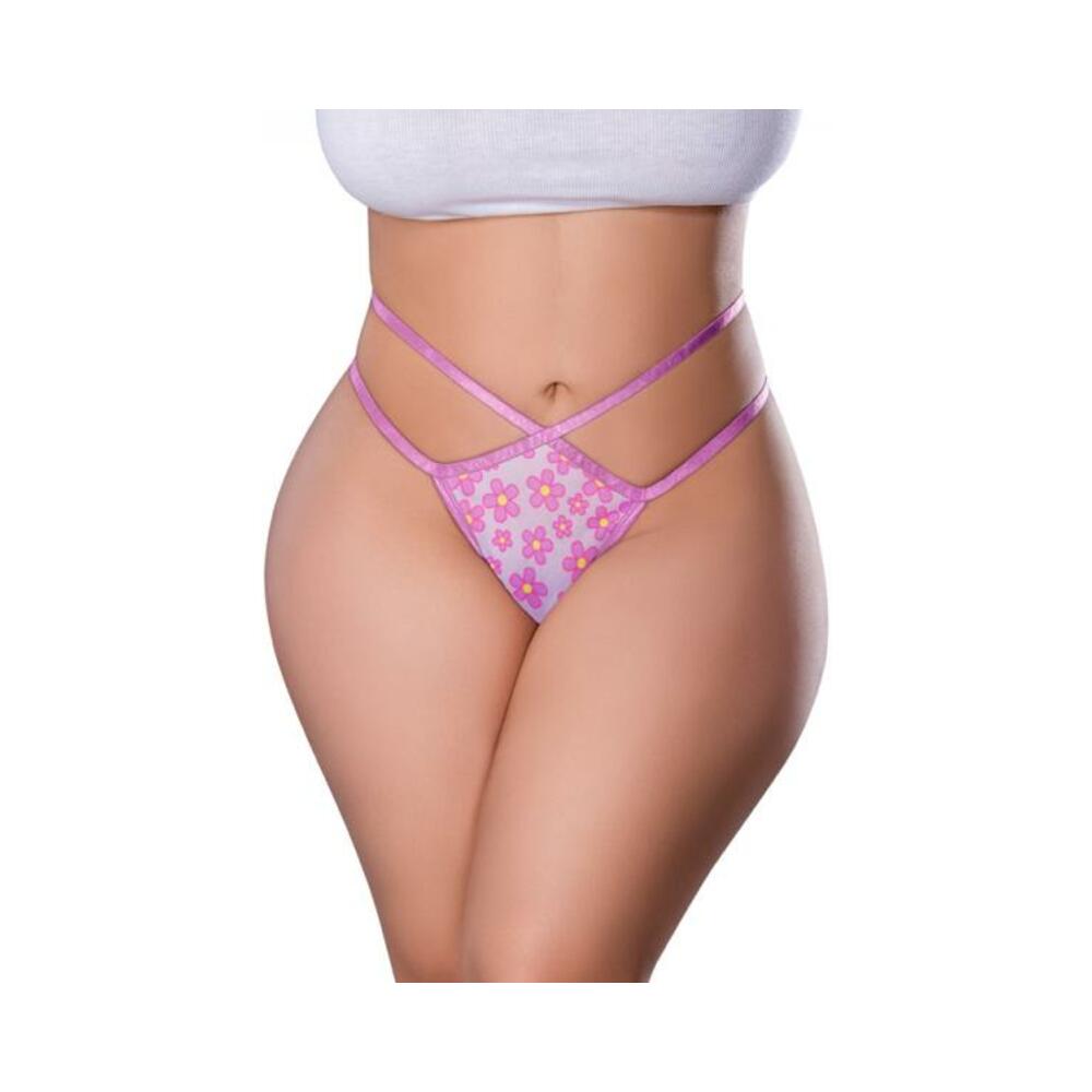 Like a blossoming flower in a quiet garden, the Daisy Split Crotch Thong unfolds with delicate allure. Created with black light responsive retro daisy printed stretch mesh, its petals bloom under the night’s enchanting glow. With a high rise and strappy design, each detail of this floral thong contributes to its undeniable appeal. The split crotch adds a daring twist, inviting you to grow in the most sensual of ways.Sizing:S/M – US 4-10L/XL – US 12-18Queen – US 20-24