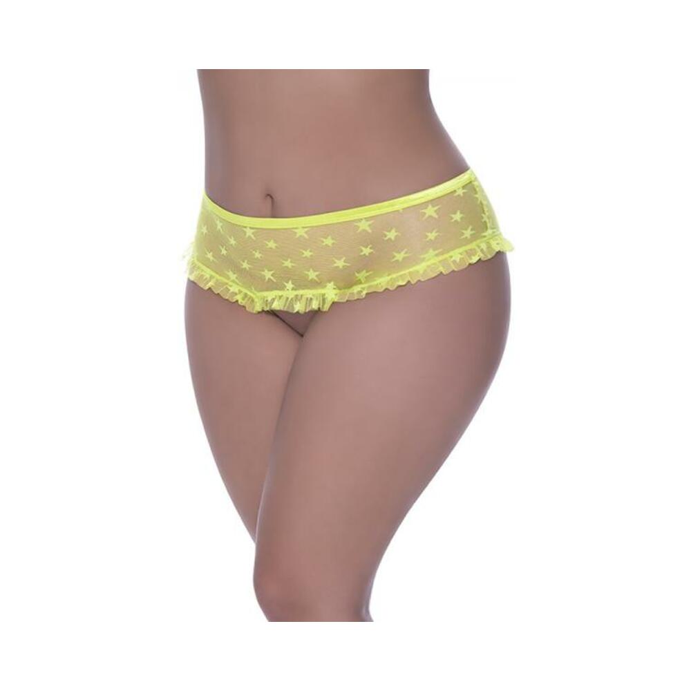 Magic Silk Love Star Skirted Hipster With Open Crotch Panty Neon Chartreuse Queen Size