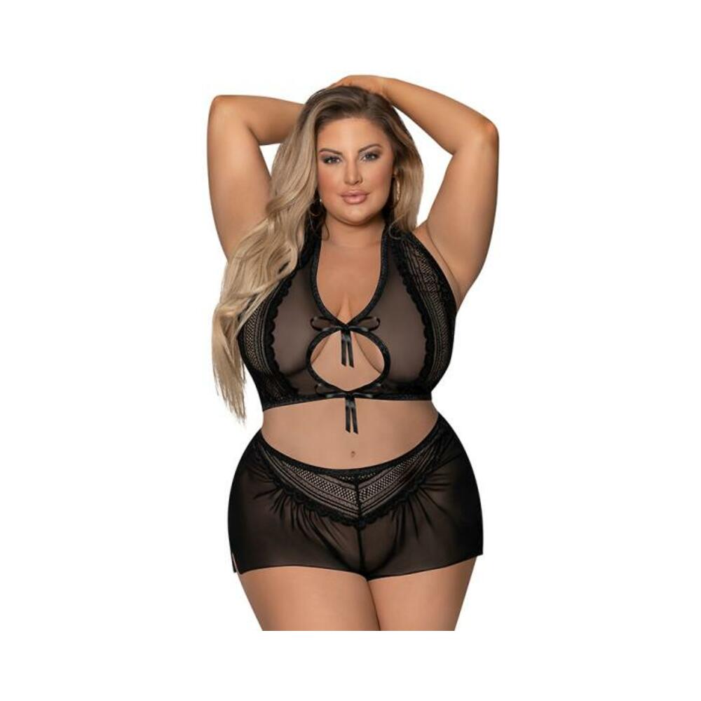 Lace & Mesh Halter Babydoll Black O/s