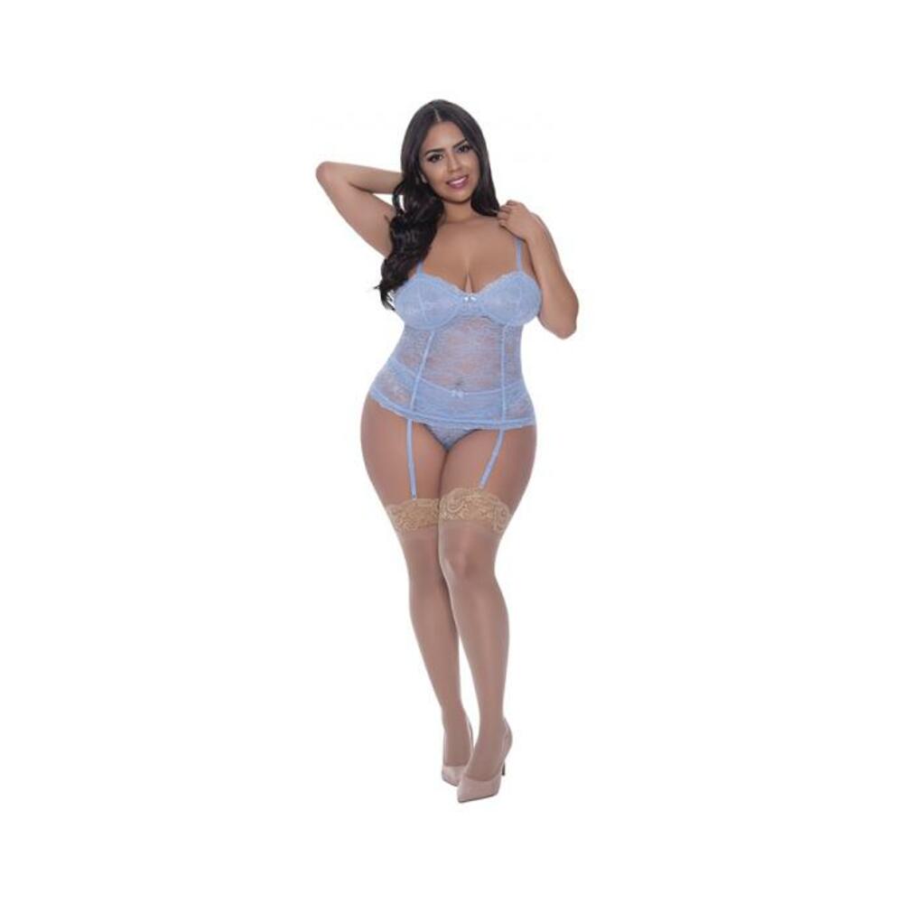 Magic Silk Ooh La Lace Bustier & Panty Set Periwinkle Queen Size