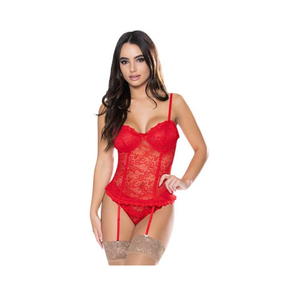 Magic Silk Ooh La Lace Bustier & Panty Set Red S/m