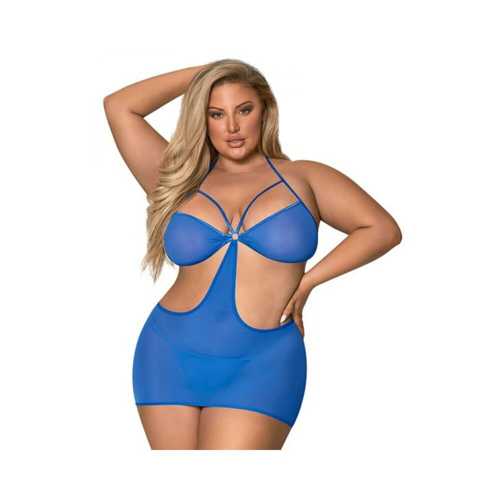 Magic Silk Sassy Cutout Dress & G-string Set Cobalt Queen