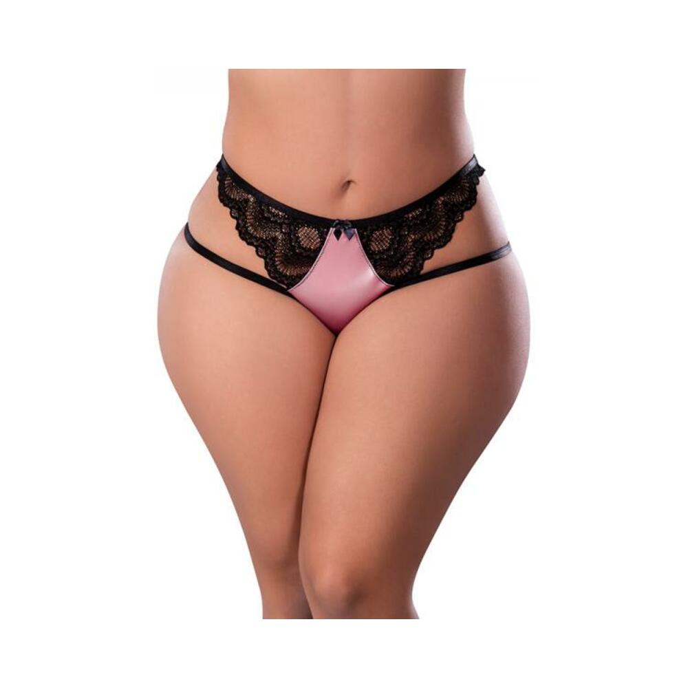 Heart Stretch Lace Panty Open Crotch Black 2X