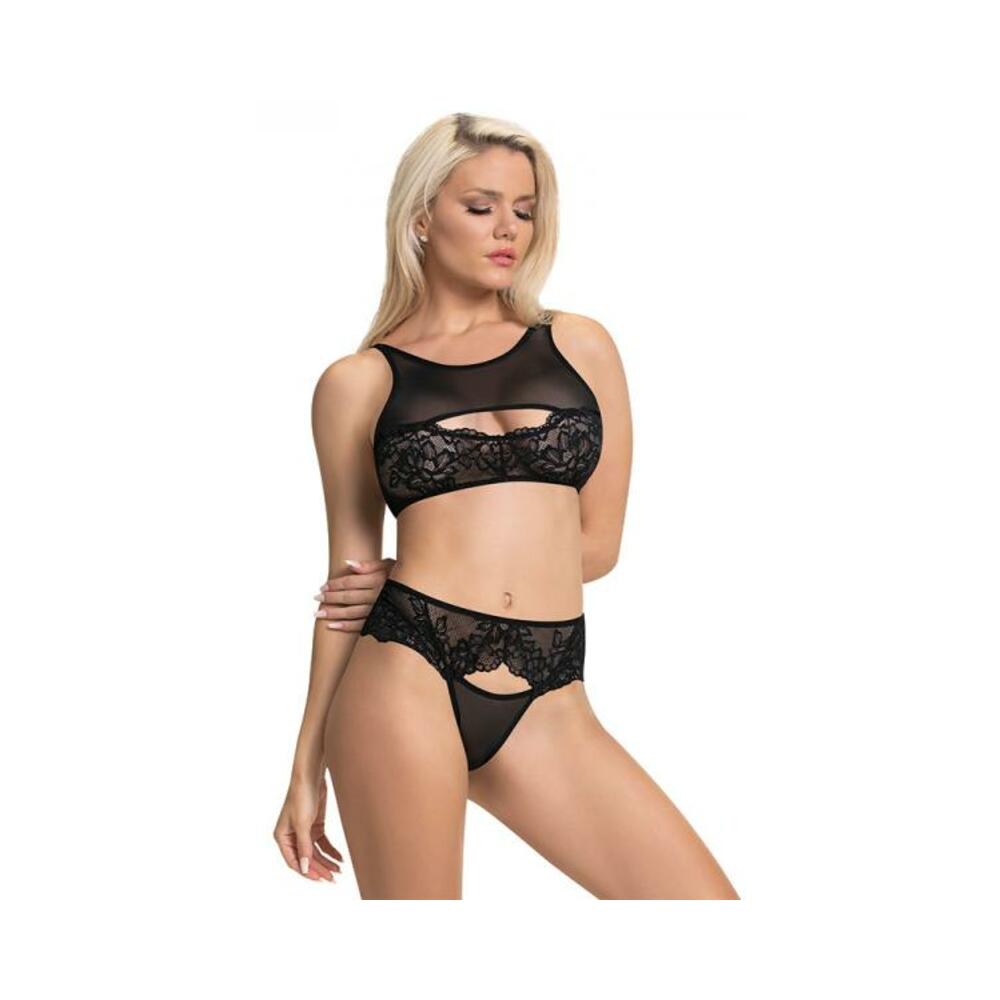 Magic Silk Sugar & Spice Peek-a-boo Bra & Panty Set Black L/xl