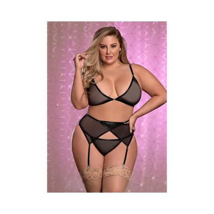 Ms Sheer Mesh Merry Widow & G-string Black S/m