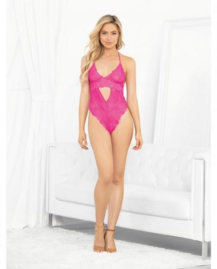Neons Keyhole Front Teddy W/tanga Back Neon Pink Sm