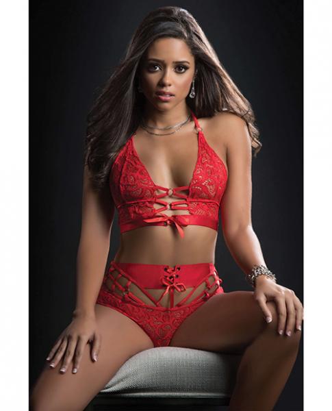O Ring Halter Top & Boyshort Candy Red O/s