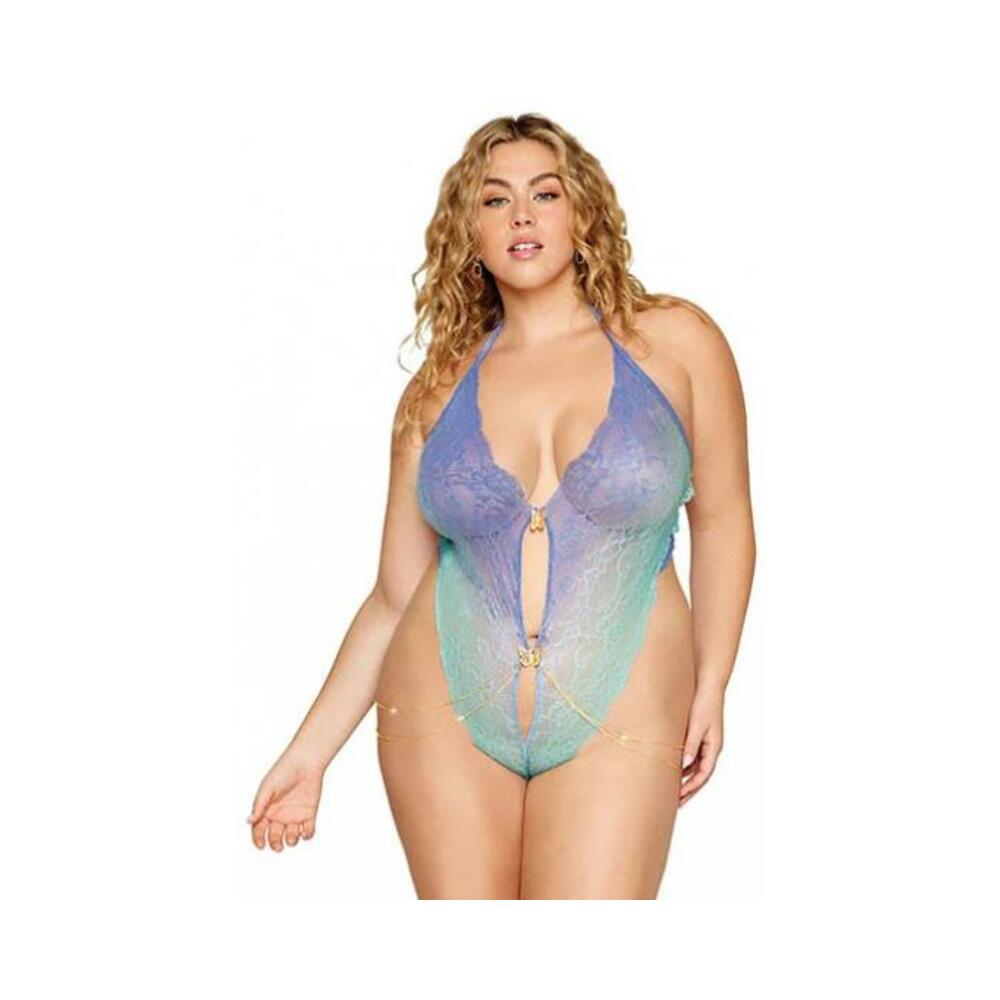 Ombre Stretch Lace Teddy W/ Butterfly Charms Lavender Haze /seafoam Osq