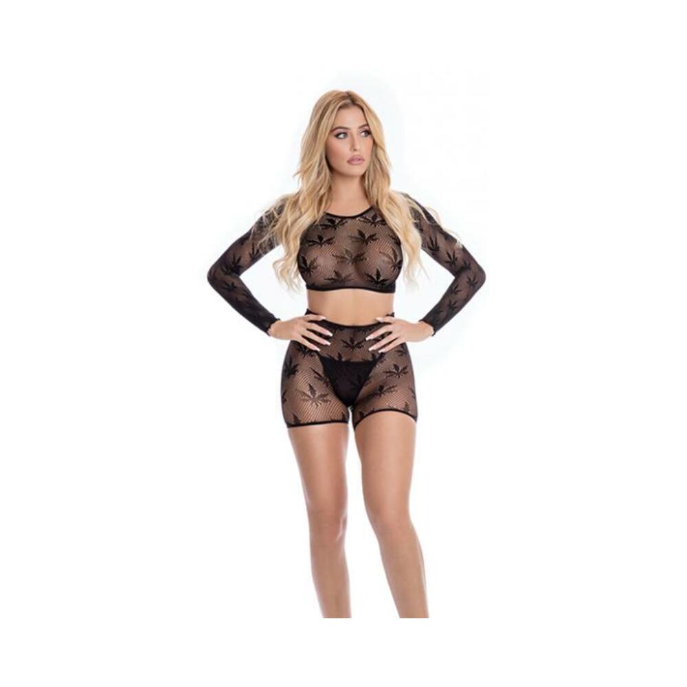 Pink Lipstick Leaf It To Me Long Sleeve Crop Top & Short Black O/s